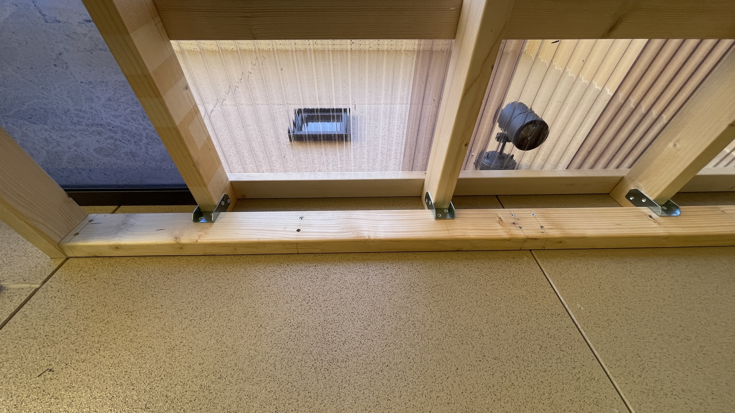 ポリカ波板屋根の寸法は現物の寸法にあわせて都度調整しながらの組み立てです。